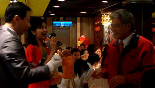 又來一個節目活動,這是新人要求的配對抽捧花,看著他倆位還真有一點夫妻相,嘿嘿。